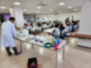 盈進中学校の理科の先生に実験に来てもらったよ。